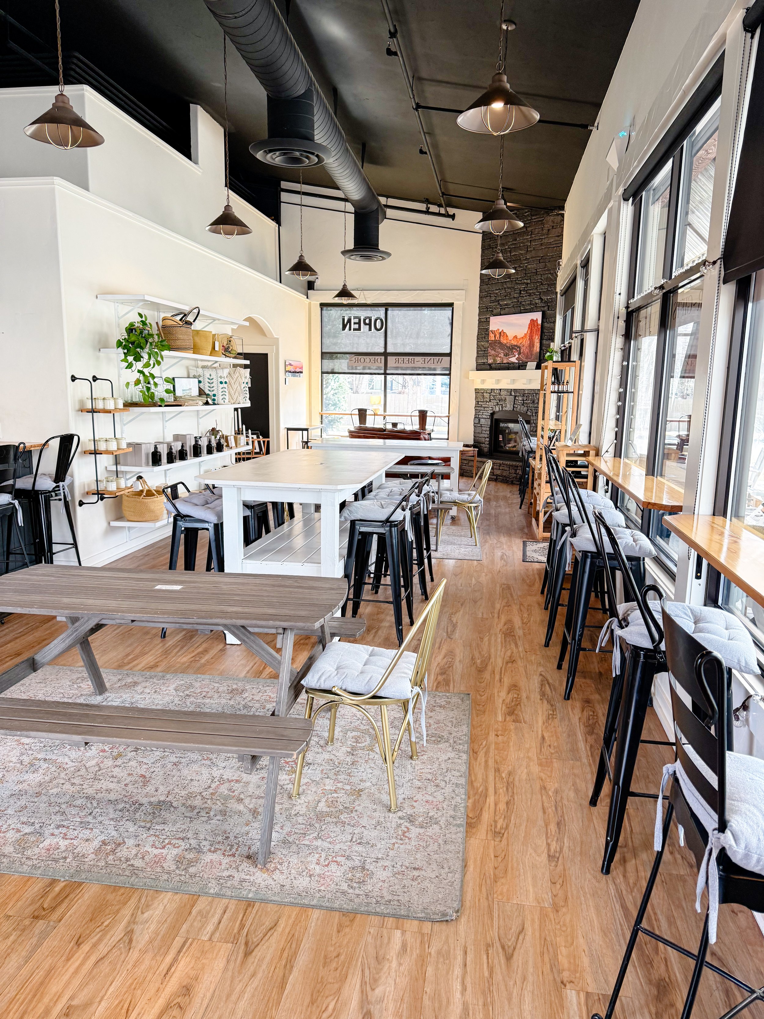 Wander through our cozy space while you relax—our shop is filled with one-of-a-kind home décor, framed artwork, hostess gifts, and statement pieces that bring personality to any room. Whether you're lounging with a drink, browsing our curated finds, or settling in for a laid-back afternoon, our café is your new favorite spot to hang out, sip, and stay awhile.