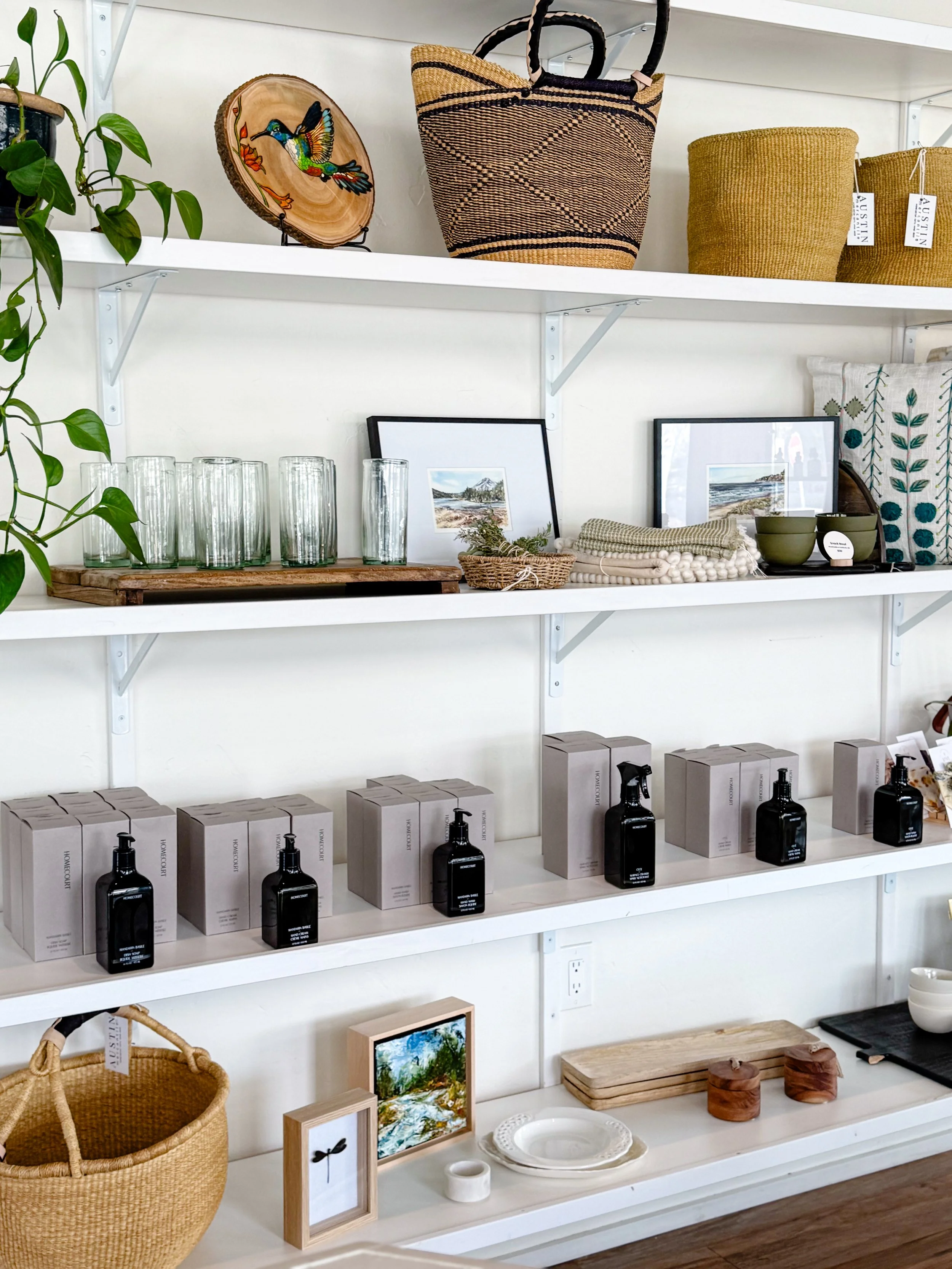 Austin offers an eclectic selection of decor, gifts and wares, for a charming selection of curated furnishings for your home. From local photography and art, Moroccan glassware and black mango cutting boards, locally made candles, antiques, ceramics from Pigeon Toe, and baskets from Big Blue Moma, you’ll find your most cherished, one of a kind, living room luxuries at Austin Mercantile.