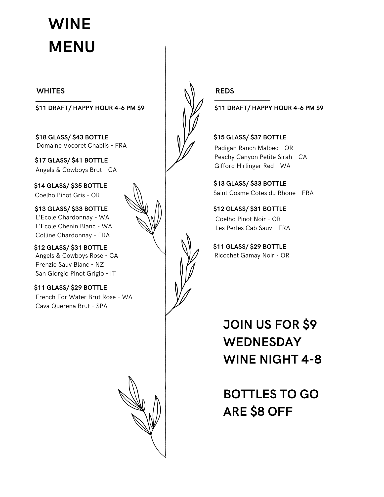 Daily Happy Hour, 4:00 pm-6:00 pm